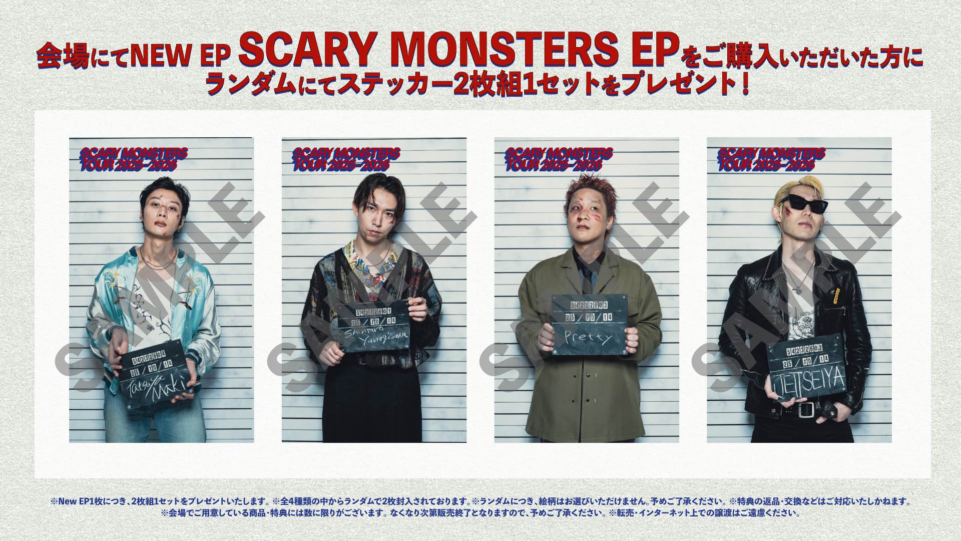 公演当日会場のCD販売ブースにてNew EP SCARY MONSTERS EPをご購入で、 限定ステッカーをプレゼント!