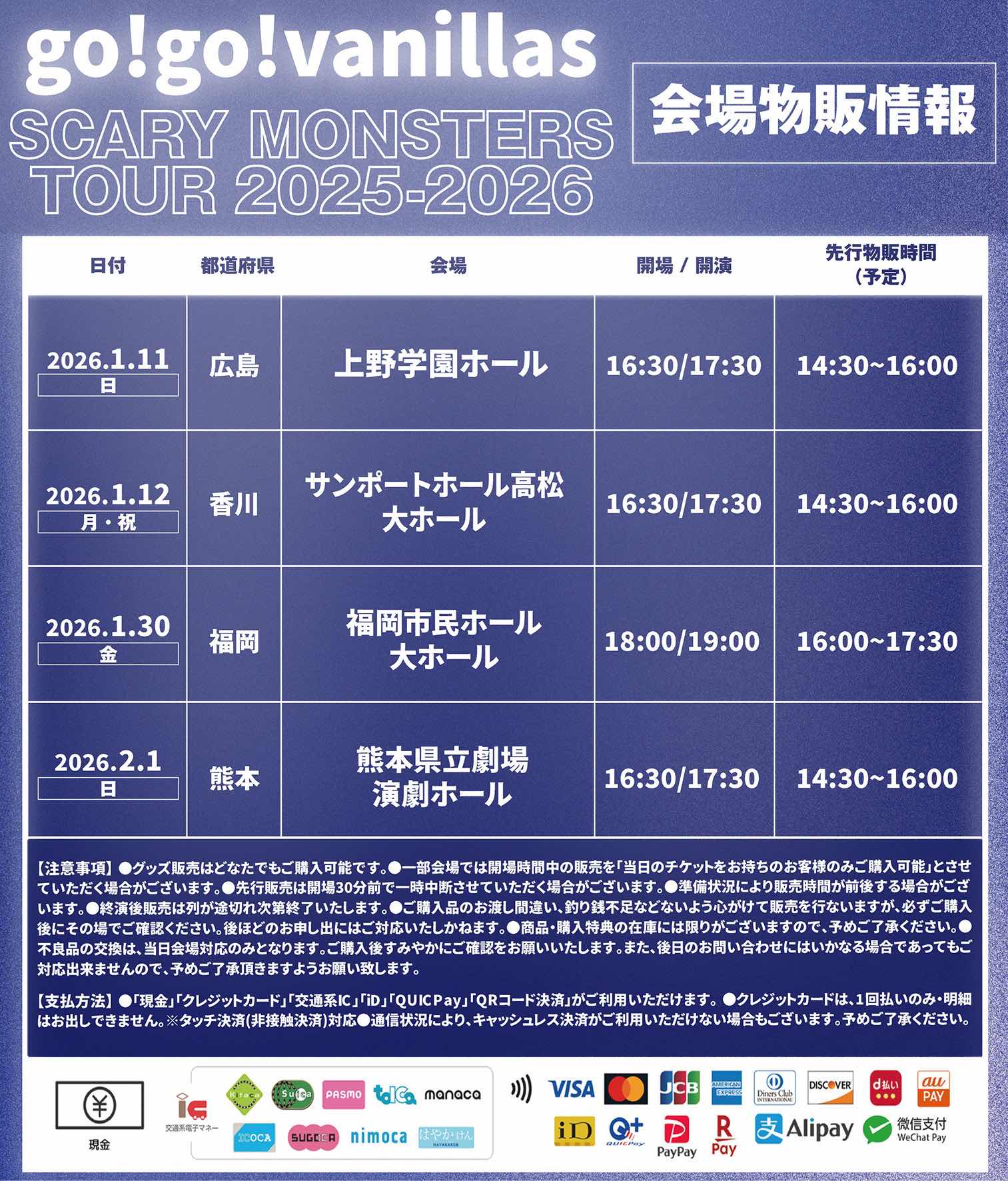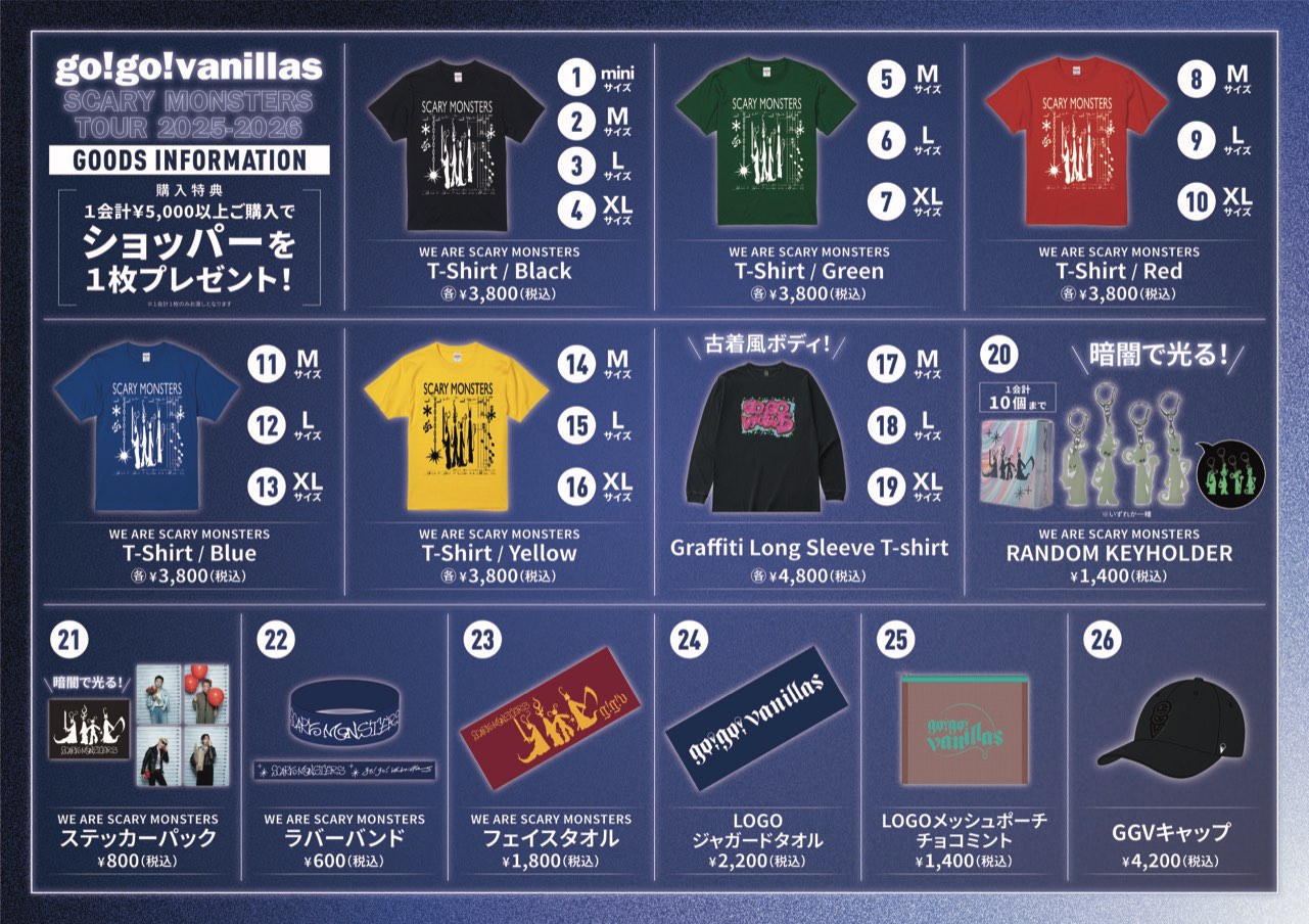「SCARY MONSTERS TOUR 2025-2026」1/11広島〜2/1熊本公演のグッズ先行販売時間が決定しました!